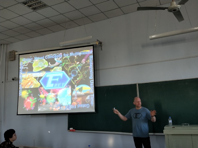 ,为学院师生做了一场以“When Time Meets Colors: Novel Concepts for Multiplexed Biosensing Using Time-Resolved FRET”为主题的学术报告。学院教师代表及全体研究生参加报告会,学院副院长孙春燕教授主持报告会。