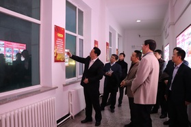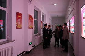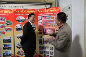 汇报并进行了交流。考察过程中,李元元校长还饶有兴致地观看了学院建设图片展,十九大宣传栏等学院文化设施,指出学院的宣传工作有传统,党建工作接地气,有创新。