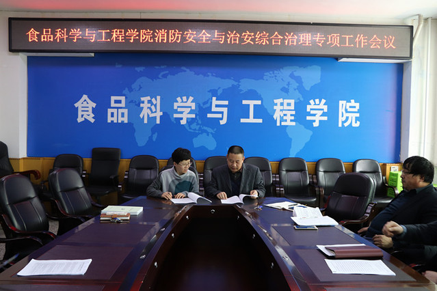 李勇军副院长首先向学院全体教职工传达了学校实验室安全座谈会精神,结合学院实际,对学院2018年消防安全与治安综合治理工作进行了周密部署。一是细化了岗位安全管理责任制度;二是要切实开展好学生宿舍、实验室和研究室等重点部位的自查自检工作;三是按学校要求成立书记、院长任组长的实验室安全工作领导小组,各分管领导分工负责、各负其职。
