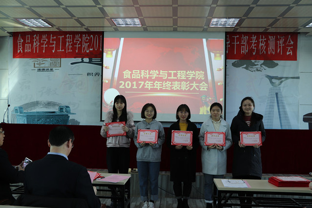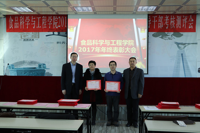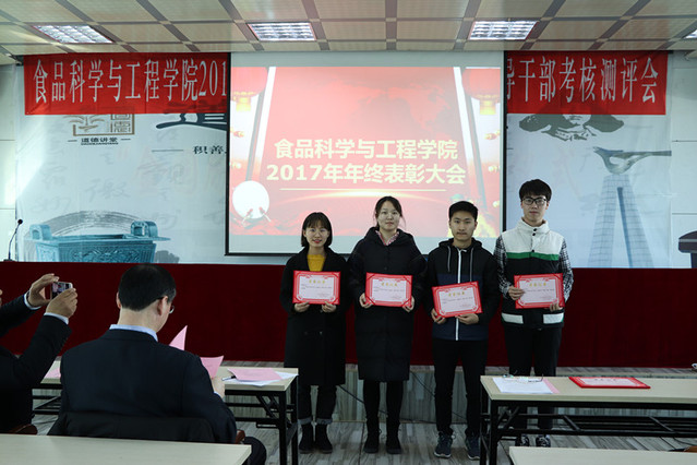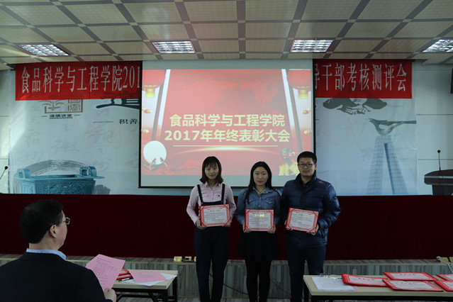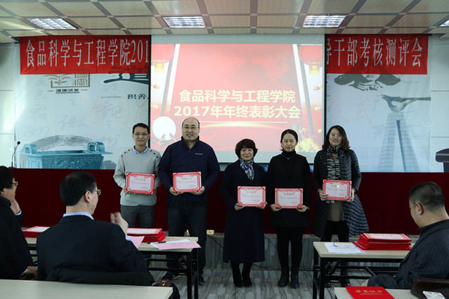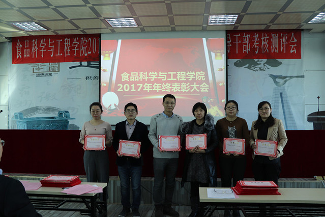会上,张铁华院长宣读了“关于表彰2017年度先进单位、先进个人的通报”、李勇军副院长宣读“吉林大学消防先进单位、个人表彰决定”、庄红副院长宣读“食品科技青年论坛获奖情况的通报”、周亚军副院长宣读了“关于2017年本科生学术年会获奖情况和优秀学生奖励的通报”。大会对一年来表现突出的单位、教师和学生进行了表彰。