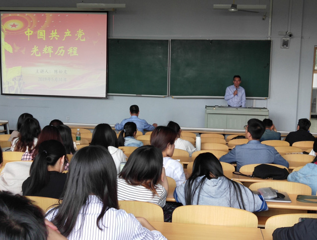 陈松友教授以中国共产党的光辉历程为主题,从中国共产党的成立过程和中国共产党的光辉历程两部分开始讲授。陈教授首先带着大家回顾了中国共产党诞生前中国的背景及重大历史事件,讲解了中华民族精神在中国发展中的重要作用以及中国共产党的成立过程中中国的三次“深刻改变”;其次,陈松友教授用翔实的图片、生动的史实以及大量准确的数字介绍了中国共产党在新民主主义革命、社会主义革命以及改革开放中做出的伟大贡献。最后陈松友教授号召师生党员要积极了解中国共产党的历史,传承中华民族的伟大精神,为实现中国梦、实现中华民族的伟大复兴不懈奋斗!