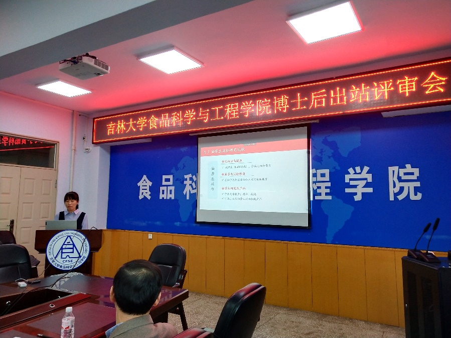 于食品楼三楼会议室召开博士后出站评审会,由闫晓侠博士做主要报告,线上腾讯会议同步进行。本次答辩会由吉林农业大学闵伟红教授担任评审主席并主持会议,出席答辩会的专家评审有长春大学赵珺教授、我校周江教授、刘静波教授、孙春燕教授、于亚莉教授、卢静教授,以及合作导师张铁华教授。